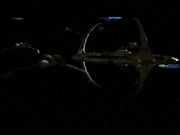 Kolana reports that the Ning'tao is taking heavy fire, but has succeeded in collapsing the Jem'Hadar formation. Then the battle goes beyond the Ch'tang's sensor range, and they lose contact. Martok ponders that it doesn't seem possible that a single Bird-of-Prey could stall ten Jem'Hadar ships, but Worf is more optimistic about the outcome as it is Kor himself in command.